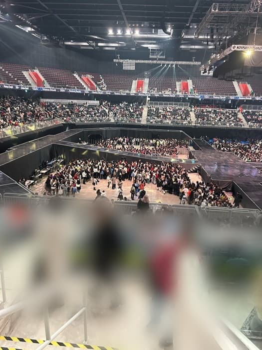 場館位於仁川的「Inspire Arena」,容納人數為15,000人(根據場地配置最多可容納18,000人)。從照片可以看到,儘管距離開演僅剩片刻,但空位相當顯眼,場地距離滿座仍有相當差距。特別是3樓座位,更是顯得稀稀落落,可以用「空蕩蕩」來形容。