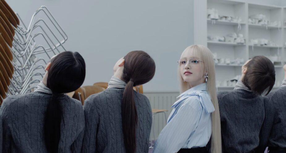 每個女孩都穿著正式的辦公室服裝,看起來非常美麗。張員瑛穿著黑色上衣,搭配白色衣領,顯得端莊嫻靜。