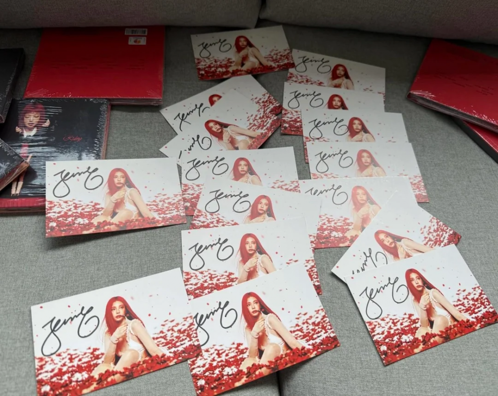 在Jennie的專輯銷售中也出現了同樣的情況,當他們注意到她專輯中包含的簽名照片卡上的簽名具有相同的特徵時。