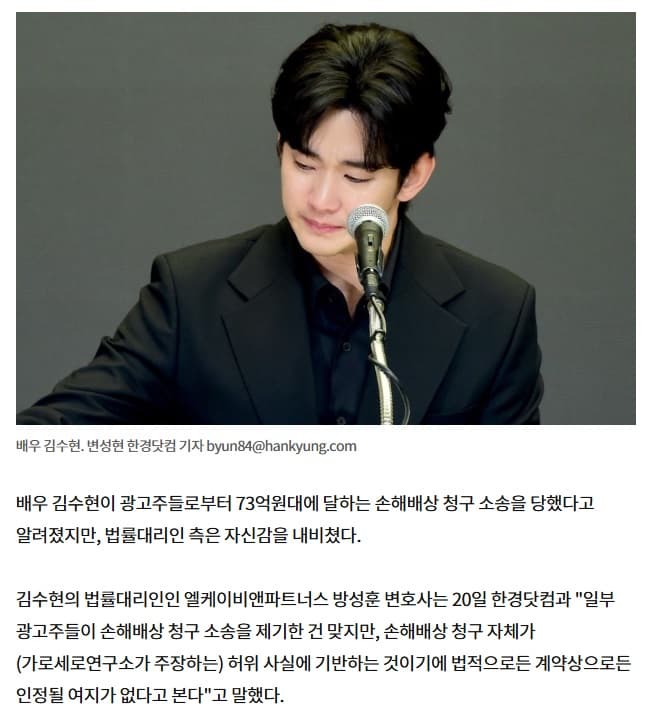6月20日,代表金秀賢的律師方成勳(LKB & Partners)透過News表示:「確實有部分廣告商提出賠償請求,但我們無法確認具體金額。」,強調將採取謹慎態度。