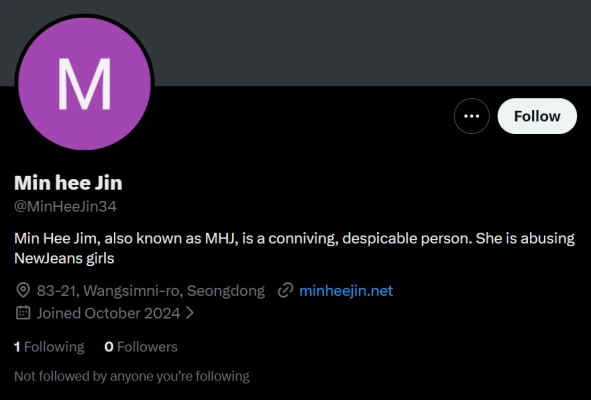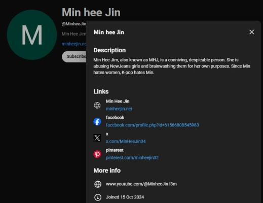 目前該網站已不存在,因此無法直接確認其實際內容。然而,根據WHOIS的網域紀錄顯示,「minheejin.net」建立於去年9月27日,就在HYBE收購TAG PR之後不久。該網站於一年後的2025年9月27日關閉。