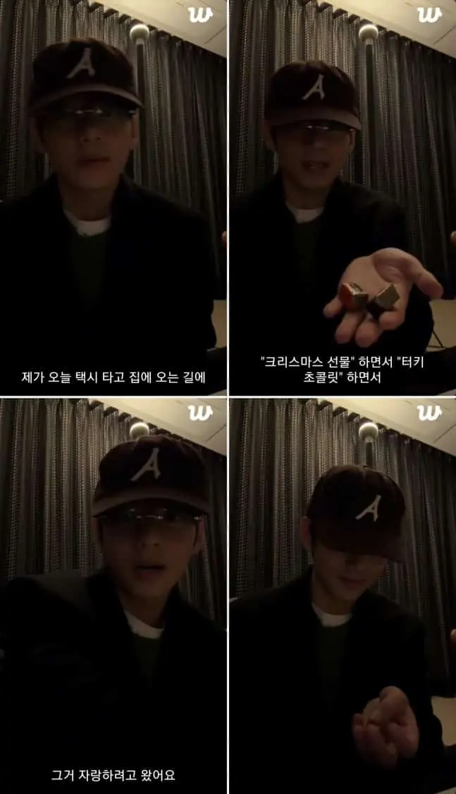 他把一塊巧克力拿到鏡頭前,並表示 :「我開一下直播是因為有東西想炫耀一下。計程車司機說:『這是驚喜禮物,是聖誕禮物,土耳其巧克力。』然後就送給我了。所以我道謝後收下了。我來這裡就是要炫耀的。」