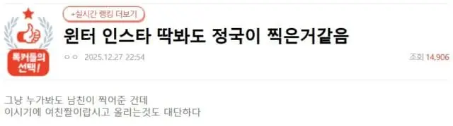 韓網Pann上一篇正在爆紅、登上熱門趨勢的貼文聲稱,這些照片「很明顯」就是他拍的。