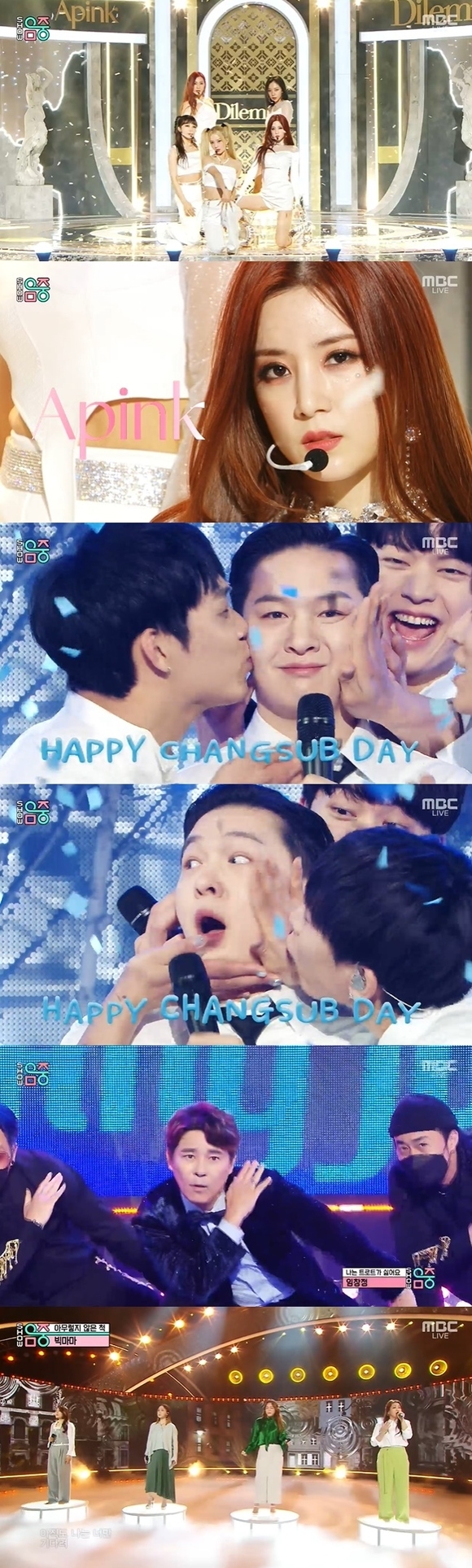 當天的節目中還公開了多樣的回歸台。發行特別專輯的Apink展示了收錄曲《Myoh My》和主打曲《Dilemma》的舞台。Apink展示了女神般的魅力,展現了音樂的廣度。