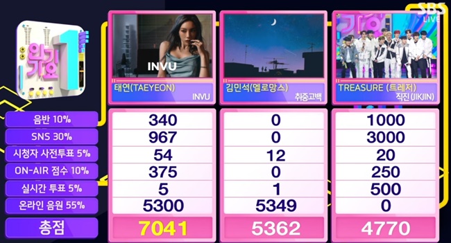 2月最後的《人氣歌謠》1位,肯定是達成Perfect All Kill的太妍的《INVU》。