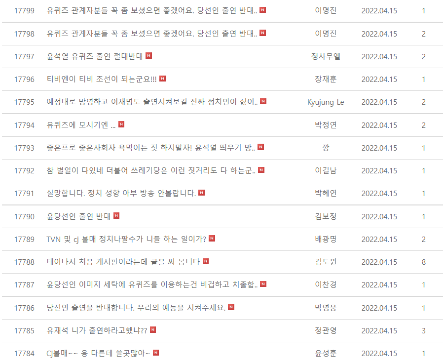 4月14日,有韓媒報導韓國候任總統尹錫悅在當地時間13日參與錄製了tvN電視台的一檔綜藝節目,引起大量韓國網友的熱議。隨後,《劉QUIZ ON THE BLOCK》節目組對外表示,當選總統尹錫悅最近完成了該節目的錄製,節目將於本月20日播出。消息一出,立刻遭來大量韓國網友的抵制,稱綜藝節目不應該服務於政治,利用它來替政客洗白形像等等。