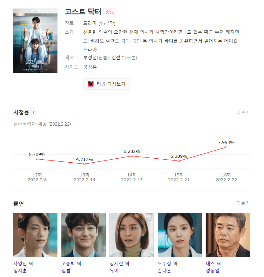 第十名:《Ghost Doctor幽靈醫生》,最高收視率7.953%。