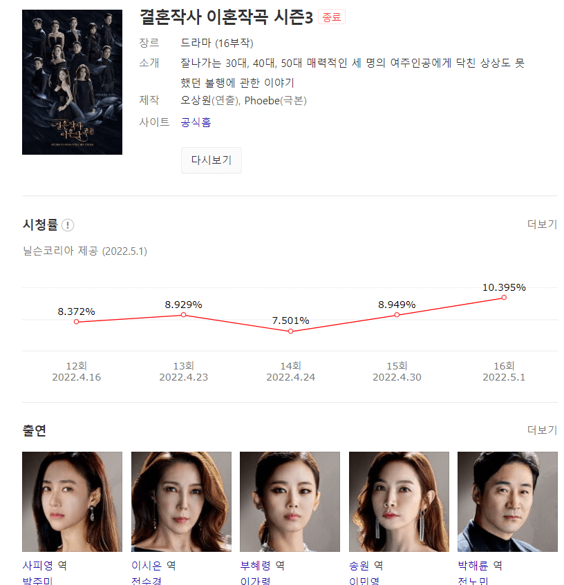 第五名:《結婚作詞,離婚作曲3》,最高收視率10.395%。