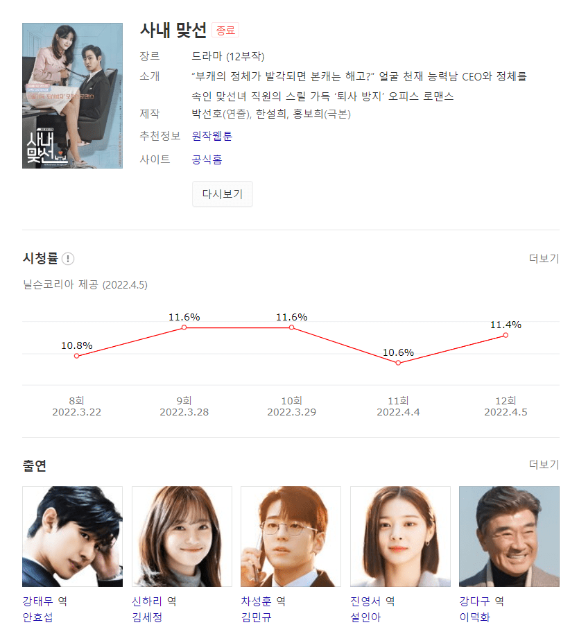不知不覺2022又過了一半,也是各種年中總結報告發布的時間了。今天小編總結了2022韓國上半年已經播完的短篇電視劇最高收視率前十名(20集以內),看看裡面有你喜歡但遺漏的嗎?如果有不妨加入清單,借助休閒時間打卡完成吧~