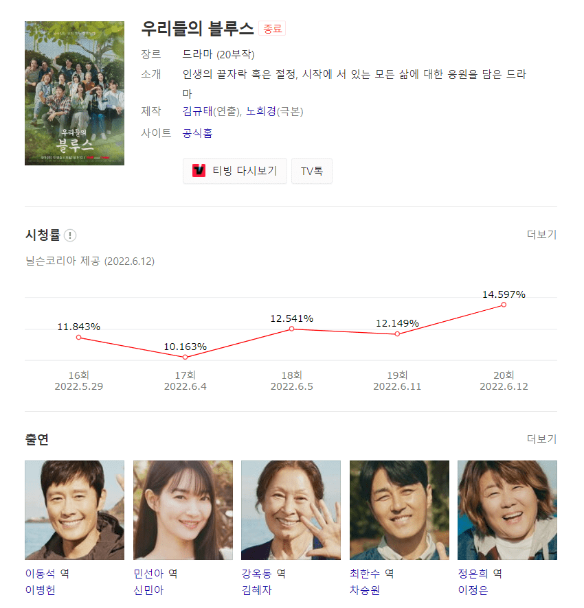 第一名:《我們的藍調時光》,最高收視率14.597%。
