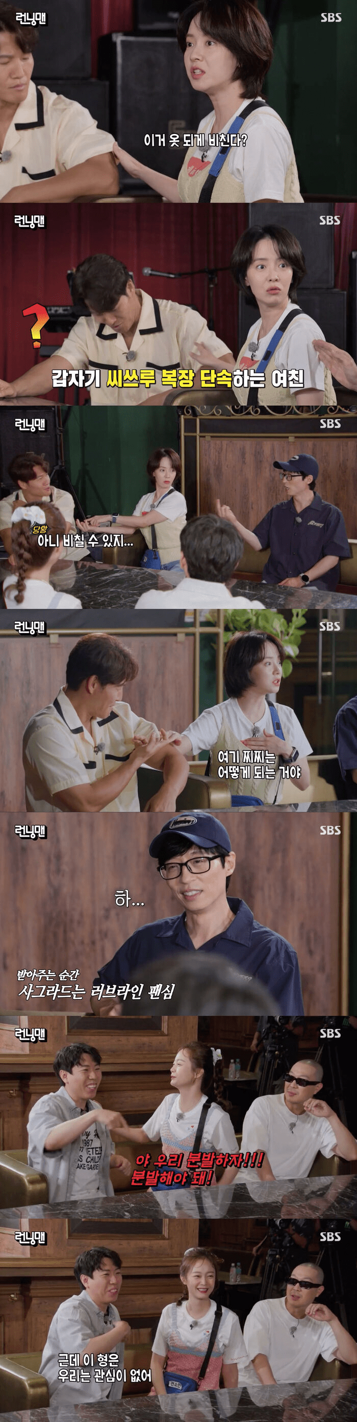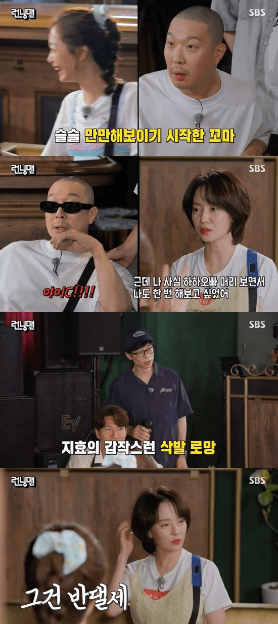 在開場的日常DISS中,宋智孝語出驚人“我其實看著HAHA哥的髮型,我也想試試。”宋智孝如此突兀大膽地剃光頭宣言一出,立即引起其他嘉賓的阻止。而節目另一位常駐女嘉賓全昭旻更是急切地阻止“不行,姐姐!還不如戴假髮吧。”宋智孝如此放飛自我的言論,是不是有點嚇到你了?
